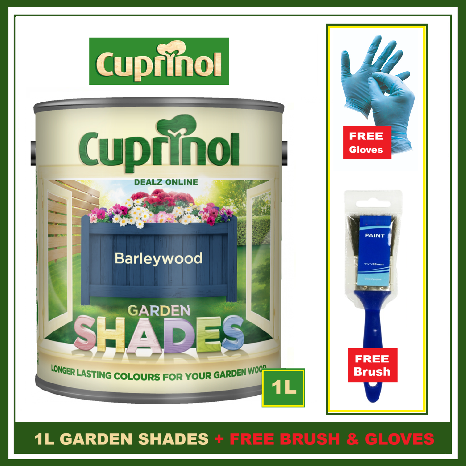 Cuprinol BARLEYWOOD 1L Garden Shades Furniture Sheds Wood Paint + FREE BRUSH &