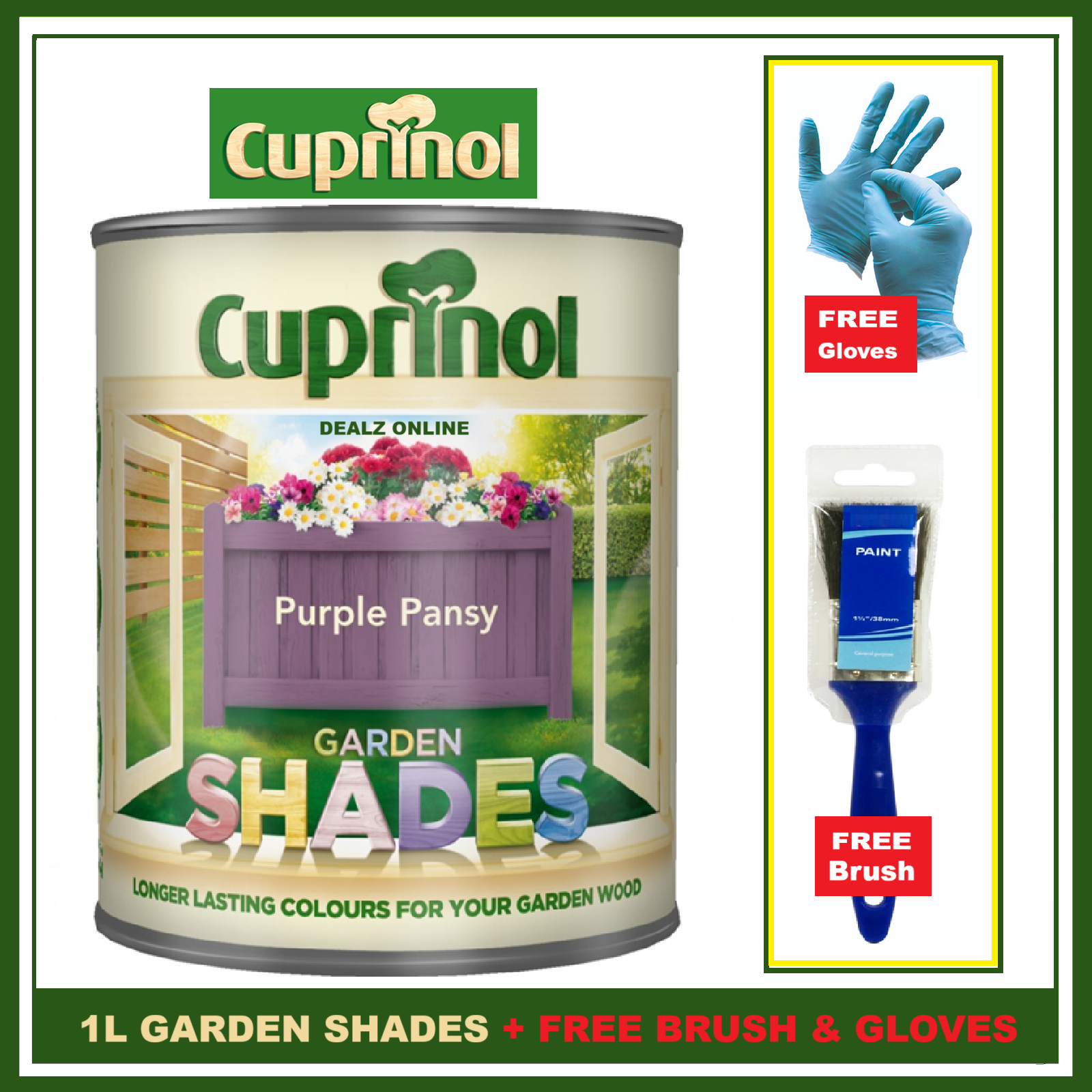 Cuprinol PURPLE PANSY 1L Garden Shades Furniture Sheds Wood Paint + FREE BRUSH &