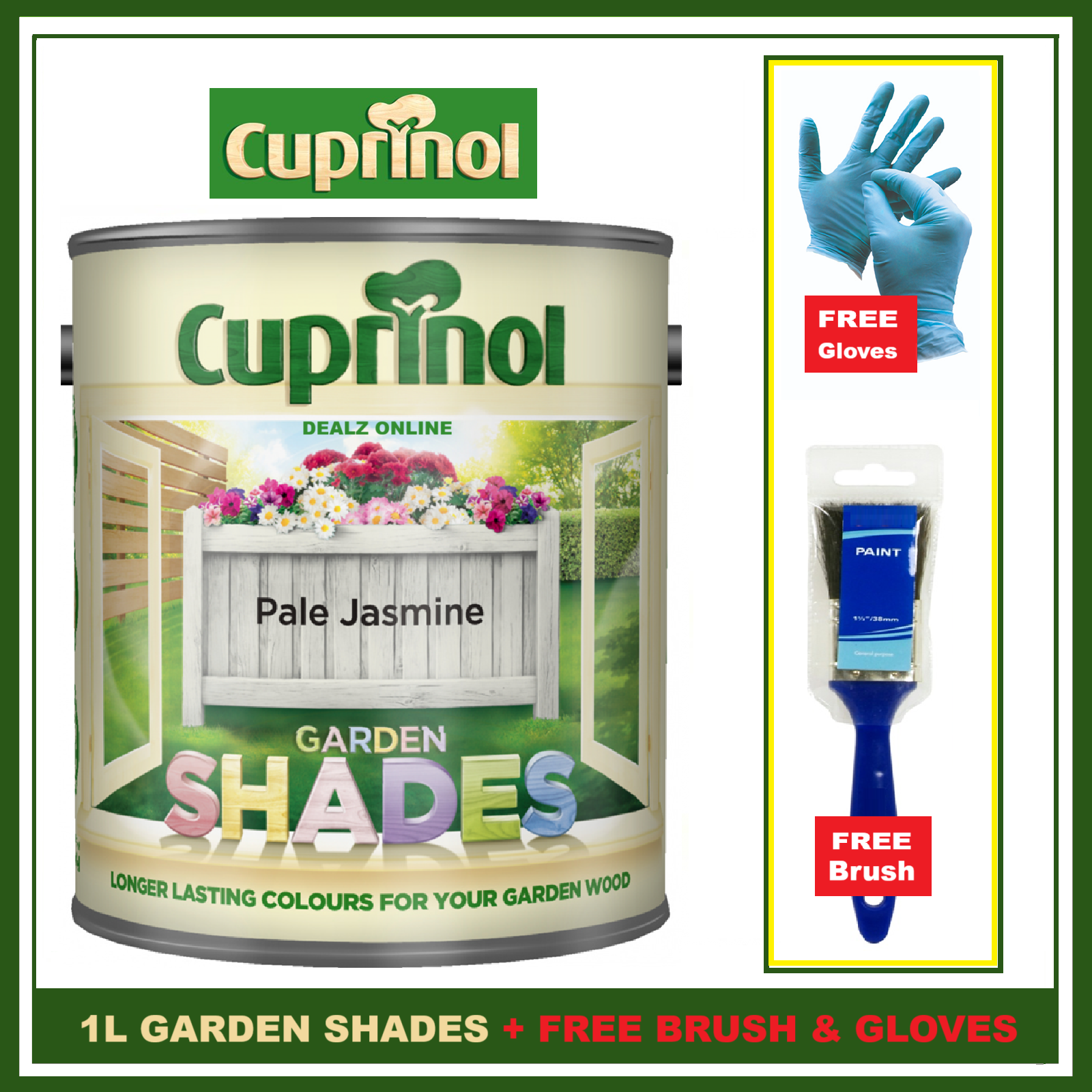 Cuprinol PALE JASMINE 1L Garden Shades Furniture Sheds Wood Paint FREE BRUSH &