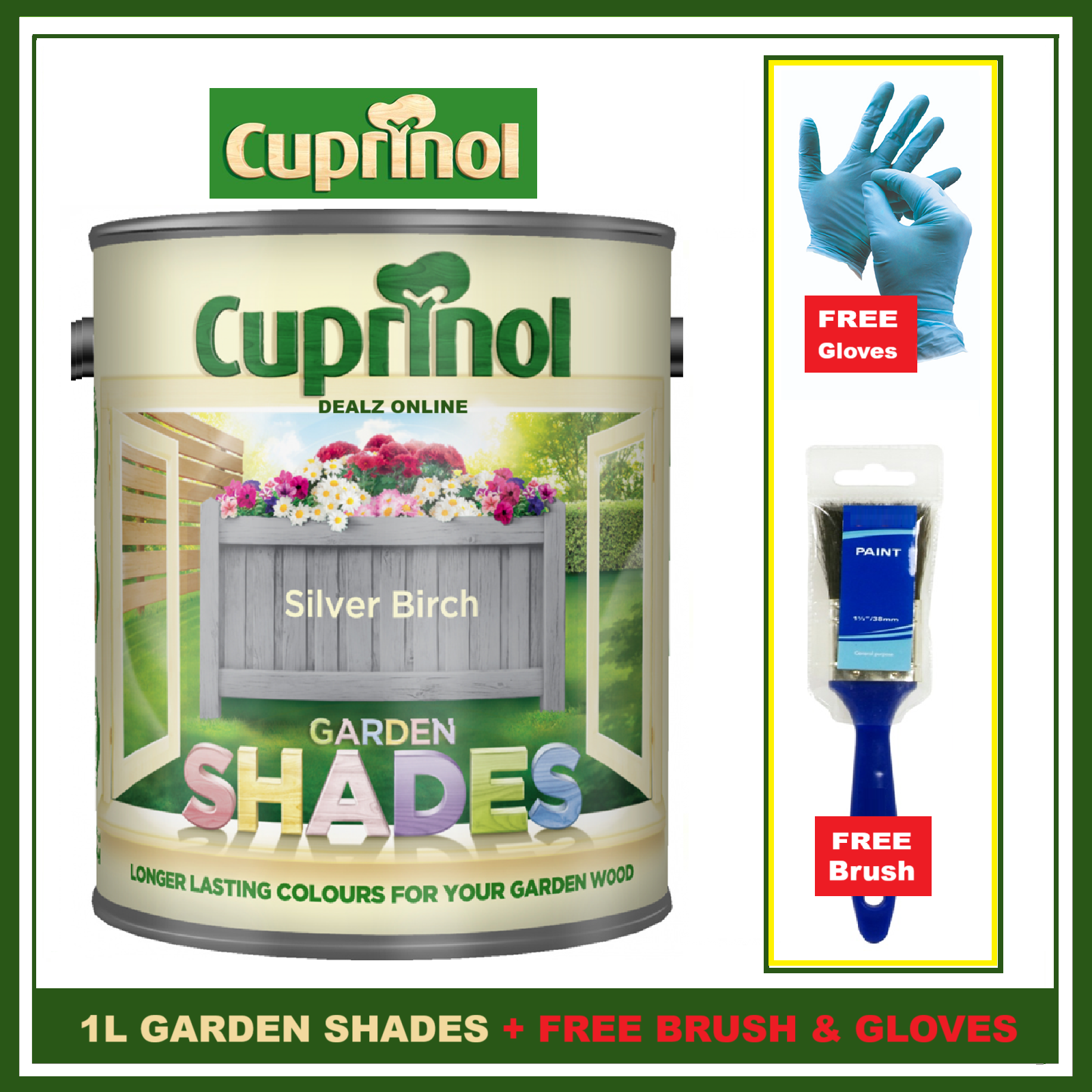 Cuprinol SILVER BIRCH 1L Garden Shades Furniture Sheds Wood Paint FREE BRUSH &