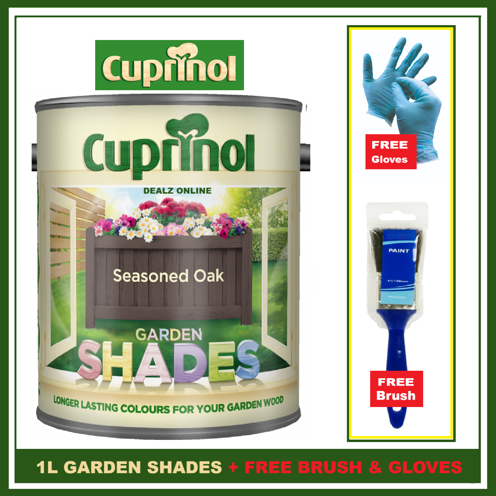 Cuprinol SEASONED OAK 1L Garden Shades Furniture Sheds Wood Paint FREE BRUSH &