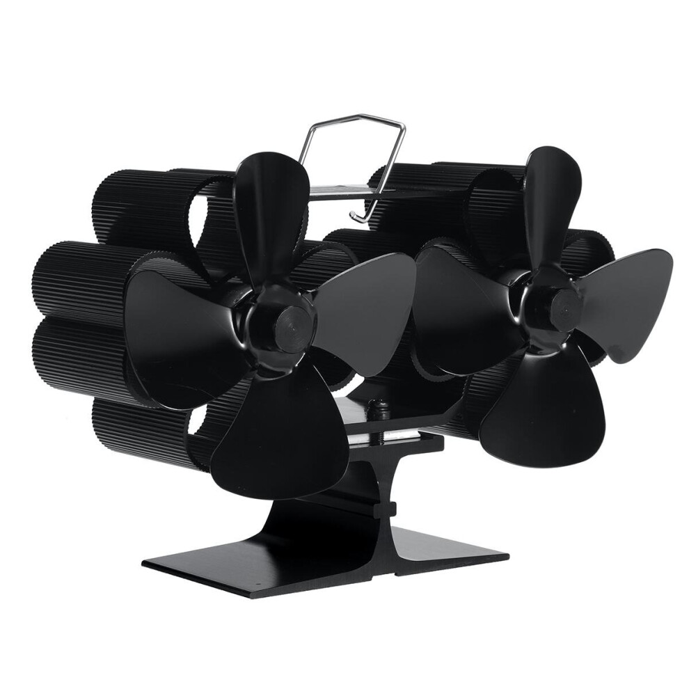 NEW 8 Blade Fireplace Fan Double Headed Silent Thermal Heating Heat Powered Stove Fan For Wood Heater Tool Heat Distribution