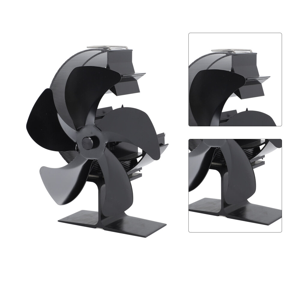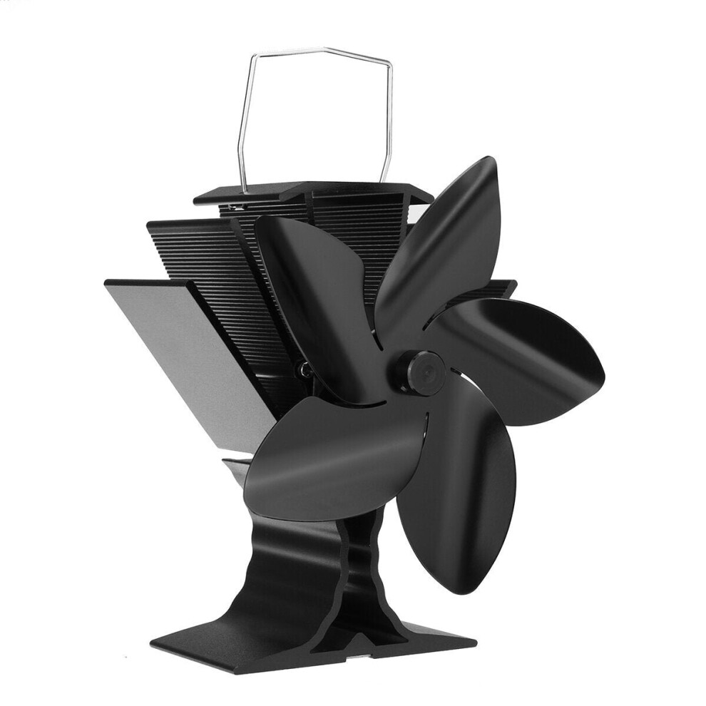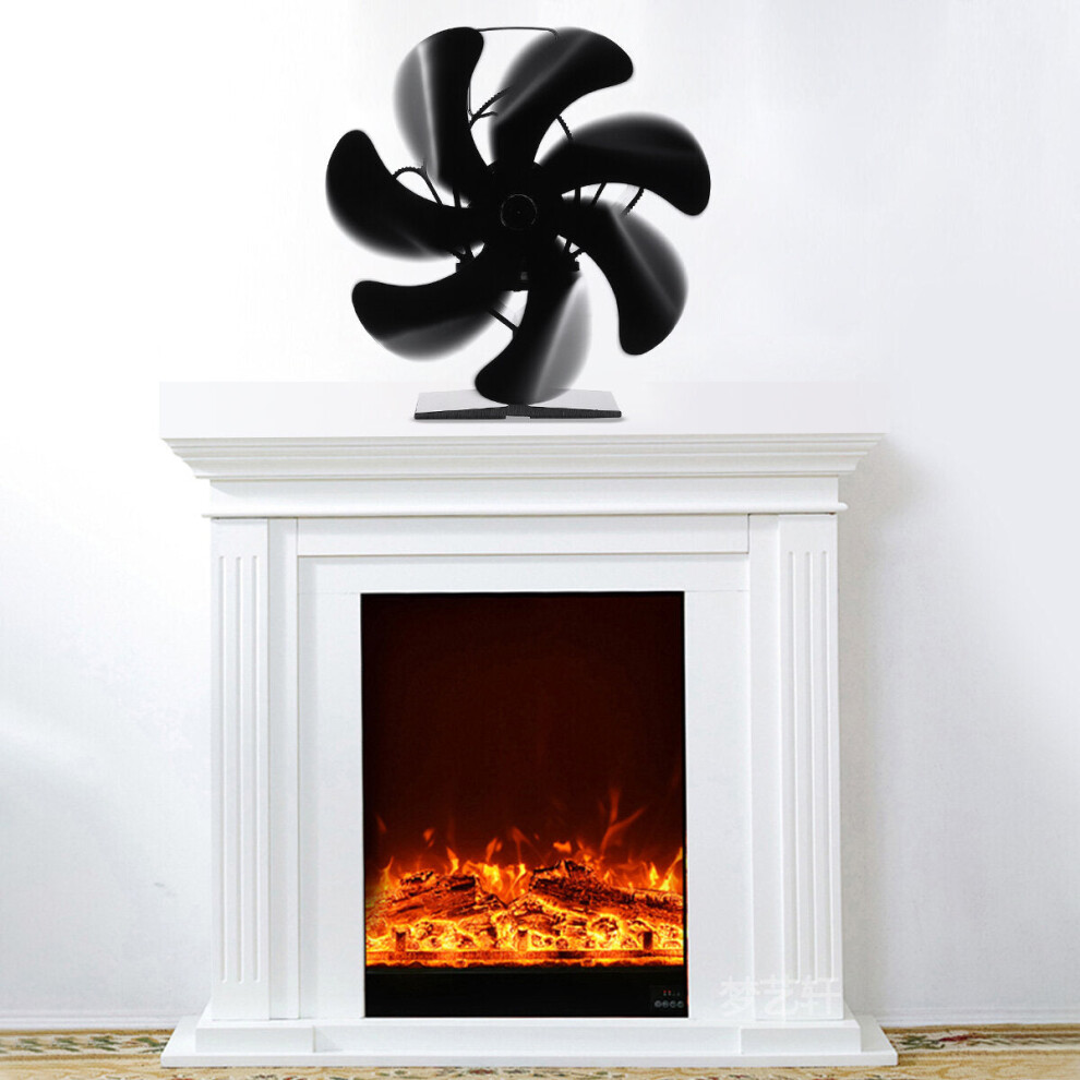 (Black) 6 Blades Wood Stove Fan Heat Self-Powered Burner Fireplace Fan Eco Heater Silent