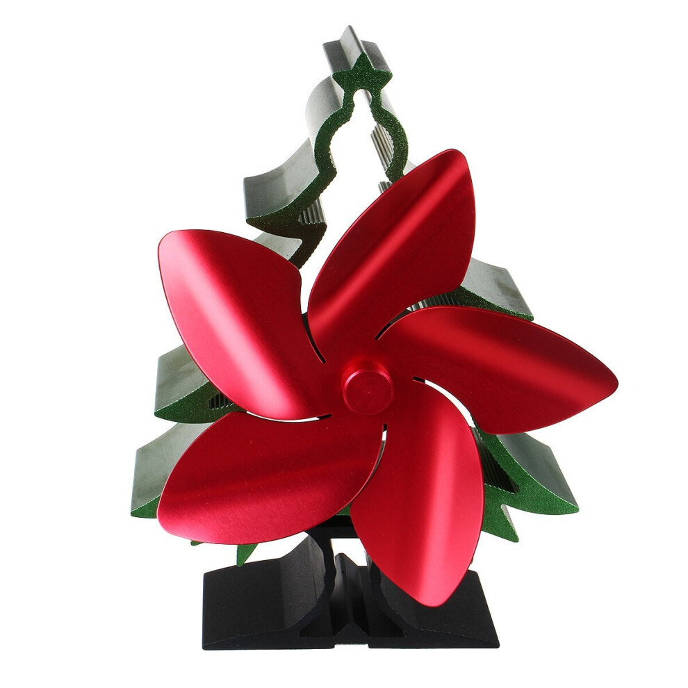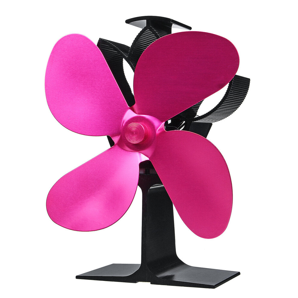 (Rose Red) 4 Blades Stove Fan Wood Heater Fireplace Fire Heat Powered Circulating Eco