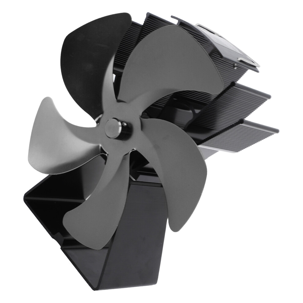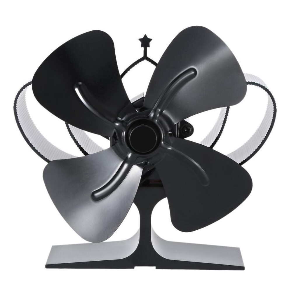 Wood Burner Fan 5-Blade Ultra Quiet Aluminum Fireplace Heater for Ice Fishing & Camping Black