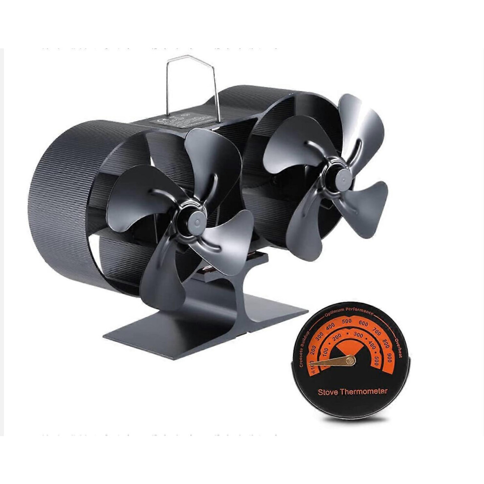 (As show, One size) 8 Blade Mini Heat Powered Wood Stove Fan Dual Motor Black, High Temperature and High Air Volume, Heater, with Thermometer