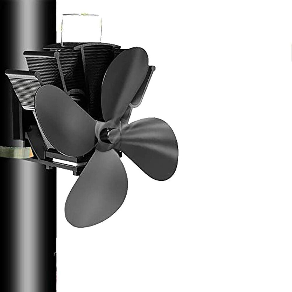 4 Blades Smoke Pipe Stove Fan Fixed Powered Heater on Wood Chimney Pipe/Wood Stove/Chimney Black