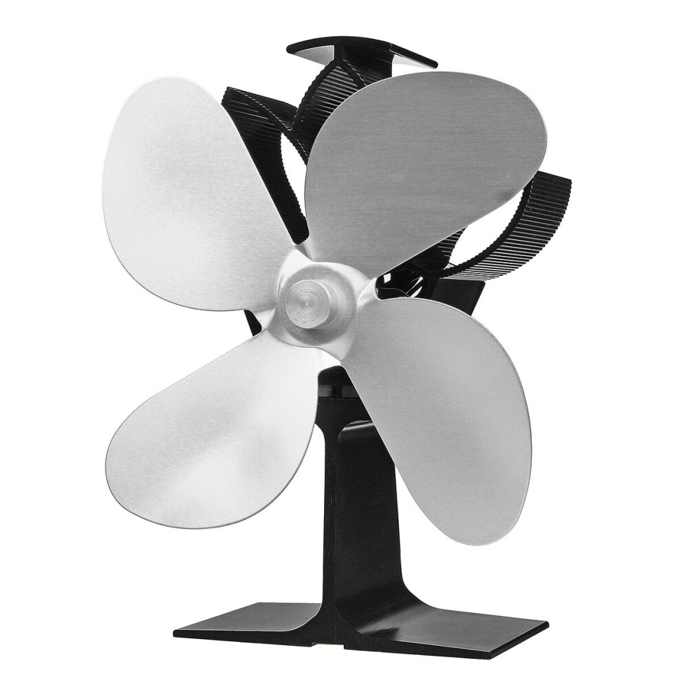 (Silver) 4 Blades Stove Fan Wood Heater Fireplace Fire Heat Powered Circulating Eco