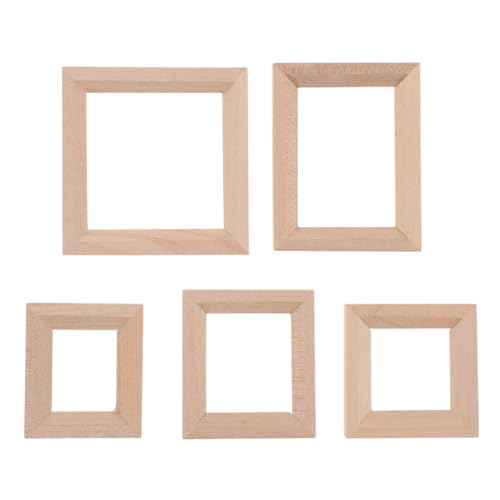 BESPORTBLE 5pcs Miniature Wood Photo Frames - Wood Dollhouse Furniture - Unfinished Mini Photo Frame - Dollhouse Miniature Scene Model