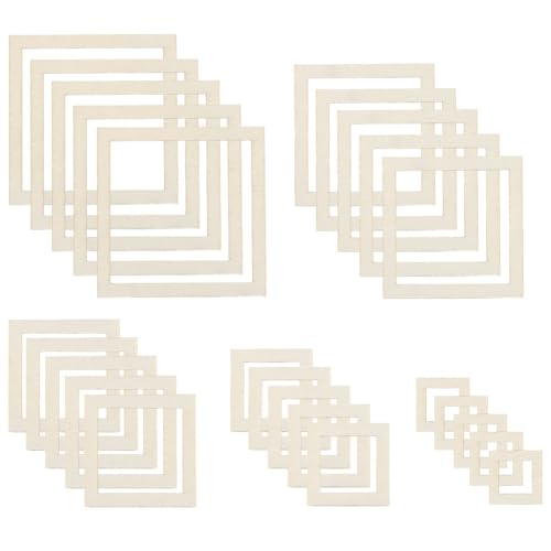 AHANDMAKER 100pcs Small Wood Photo Frames 5 Sizes Bisque Square Unfinished Square Frames Dollhouse Accessories for Wall Art Christmas Room Boxes DIY Crafts Decorations