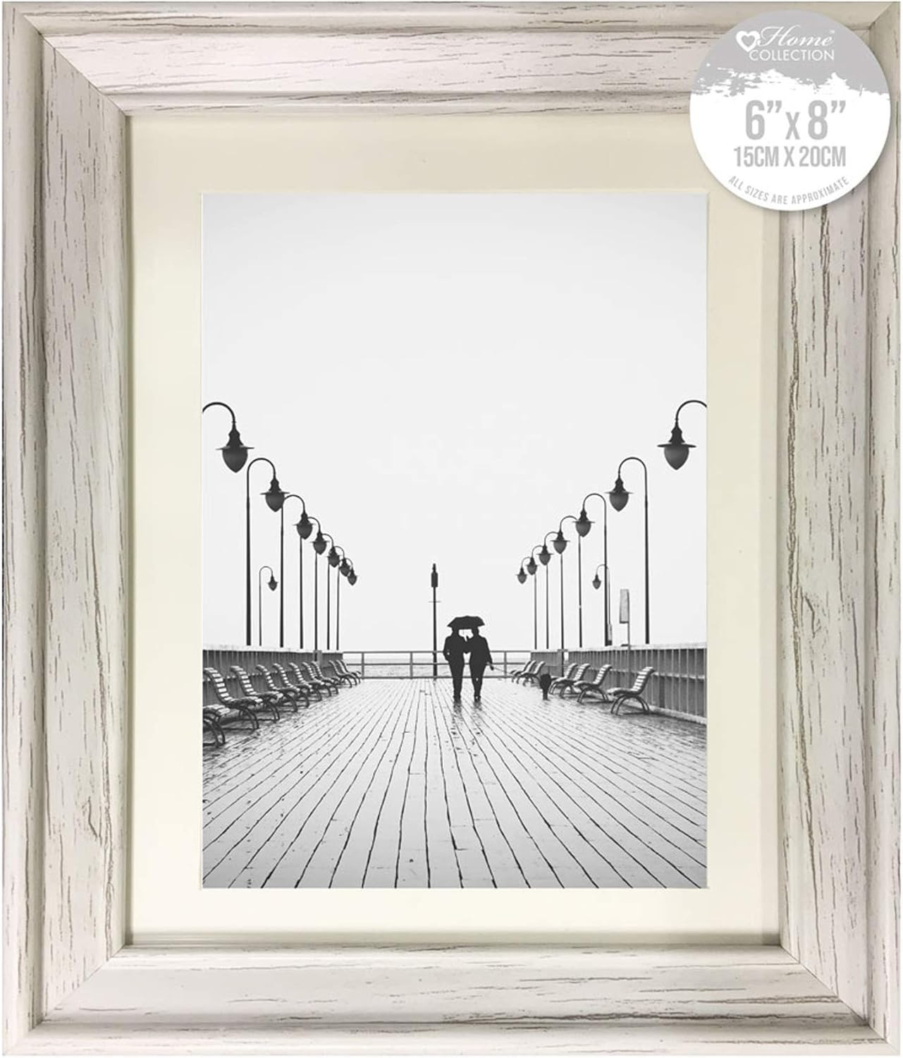 Design Group White Solitaire Shabby Chic Distressed Wood Styrene Photo Frames 8X