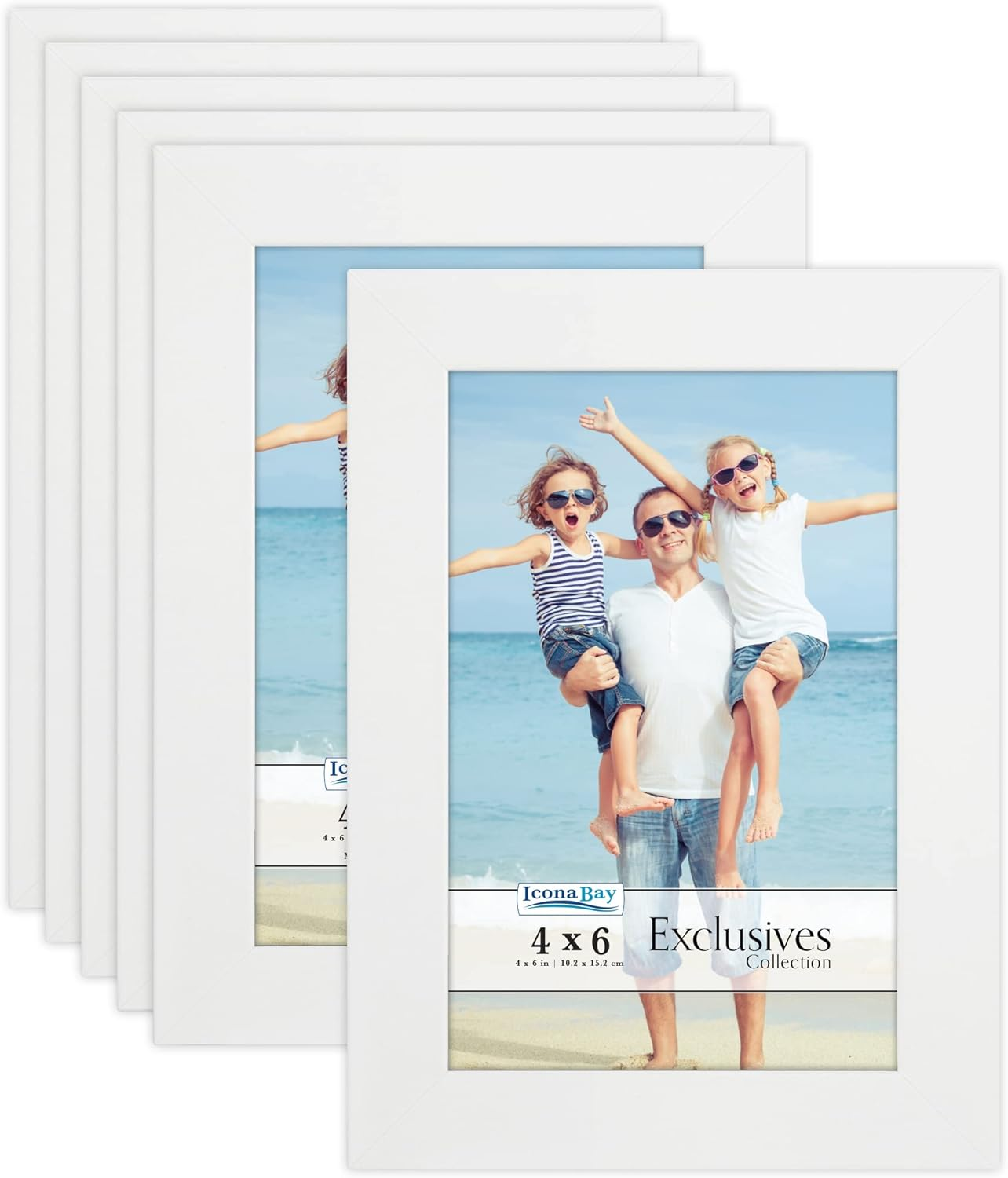 6X4 Picture Frames (White, 6 Pack), Sturdy Wood Composite Photo Frames 6 X 4, Sl