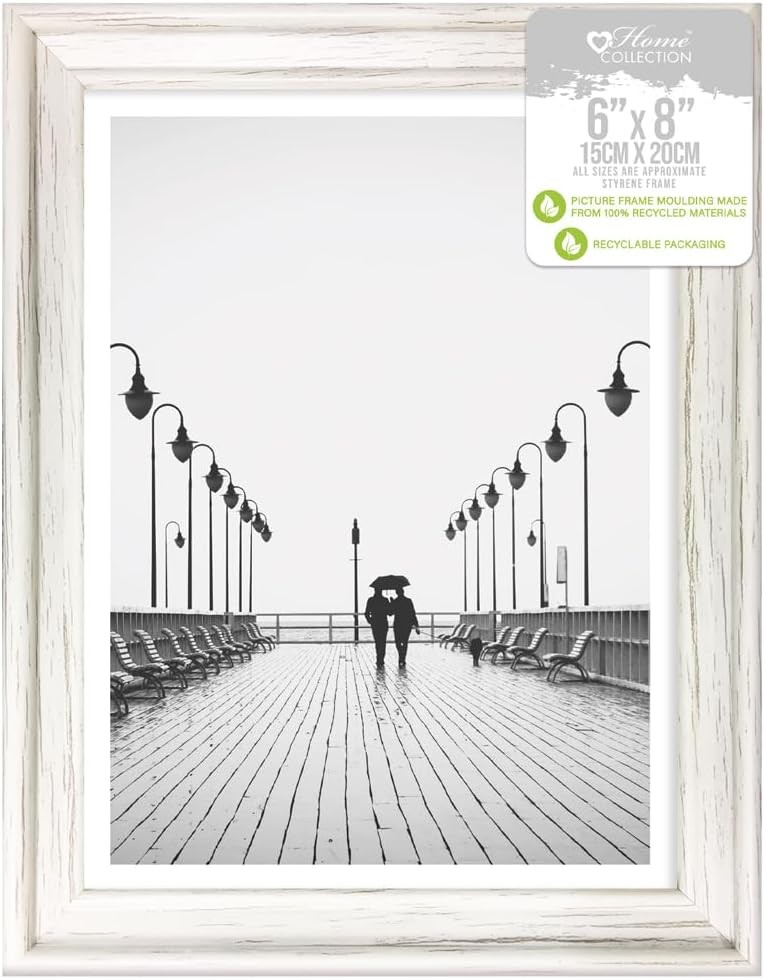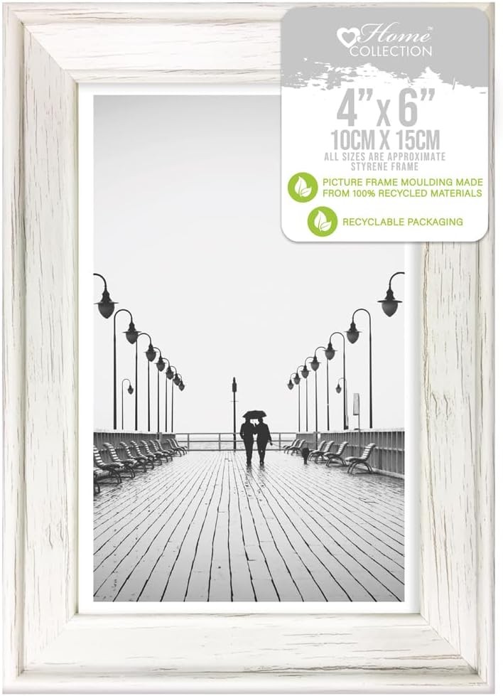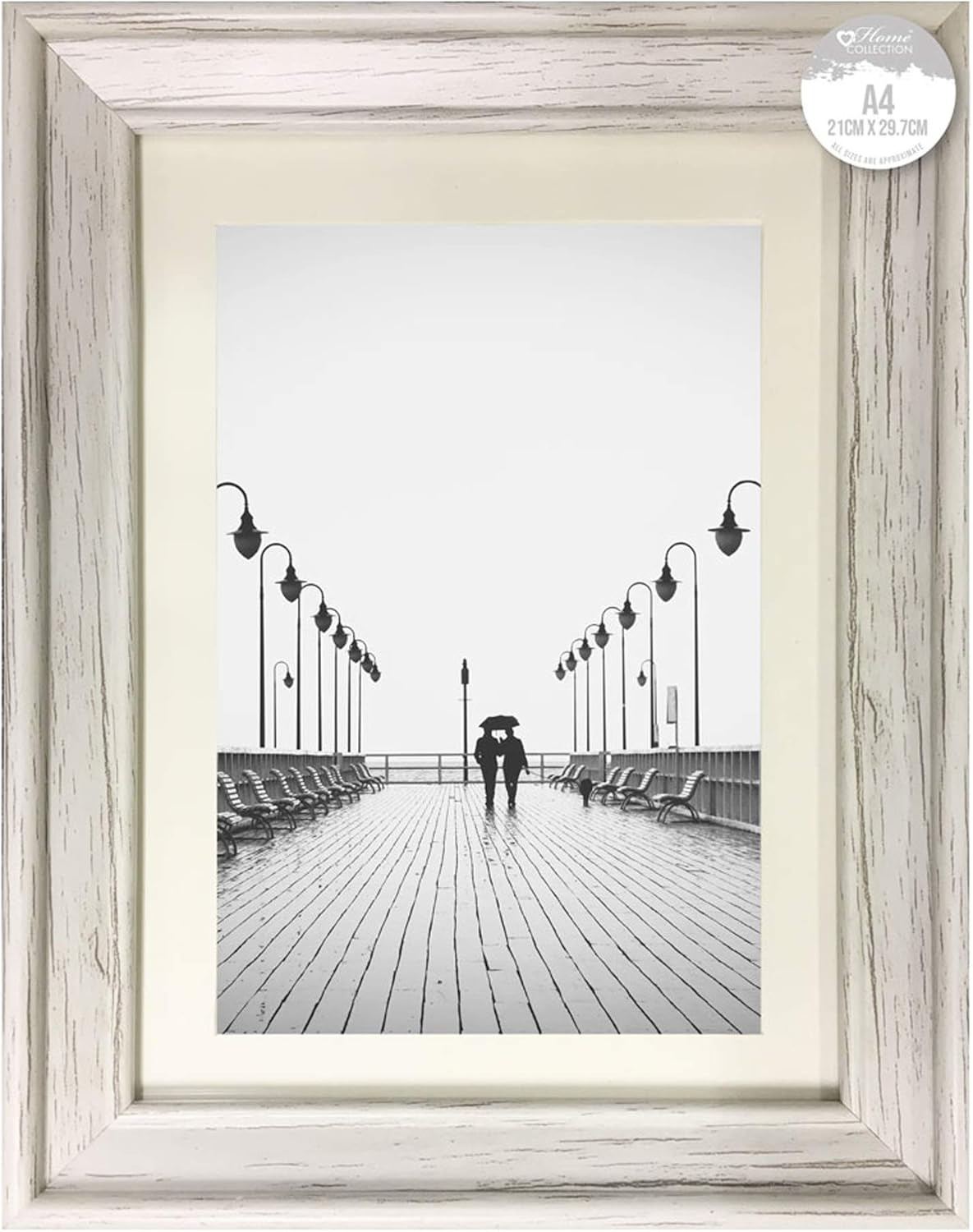 Design Group White Solitaire Shabby Chic Distressed Wood Styrene Photo Frames A4