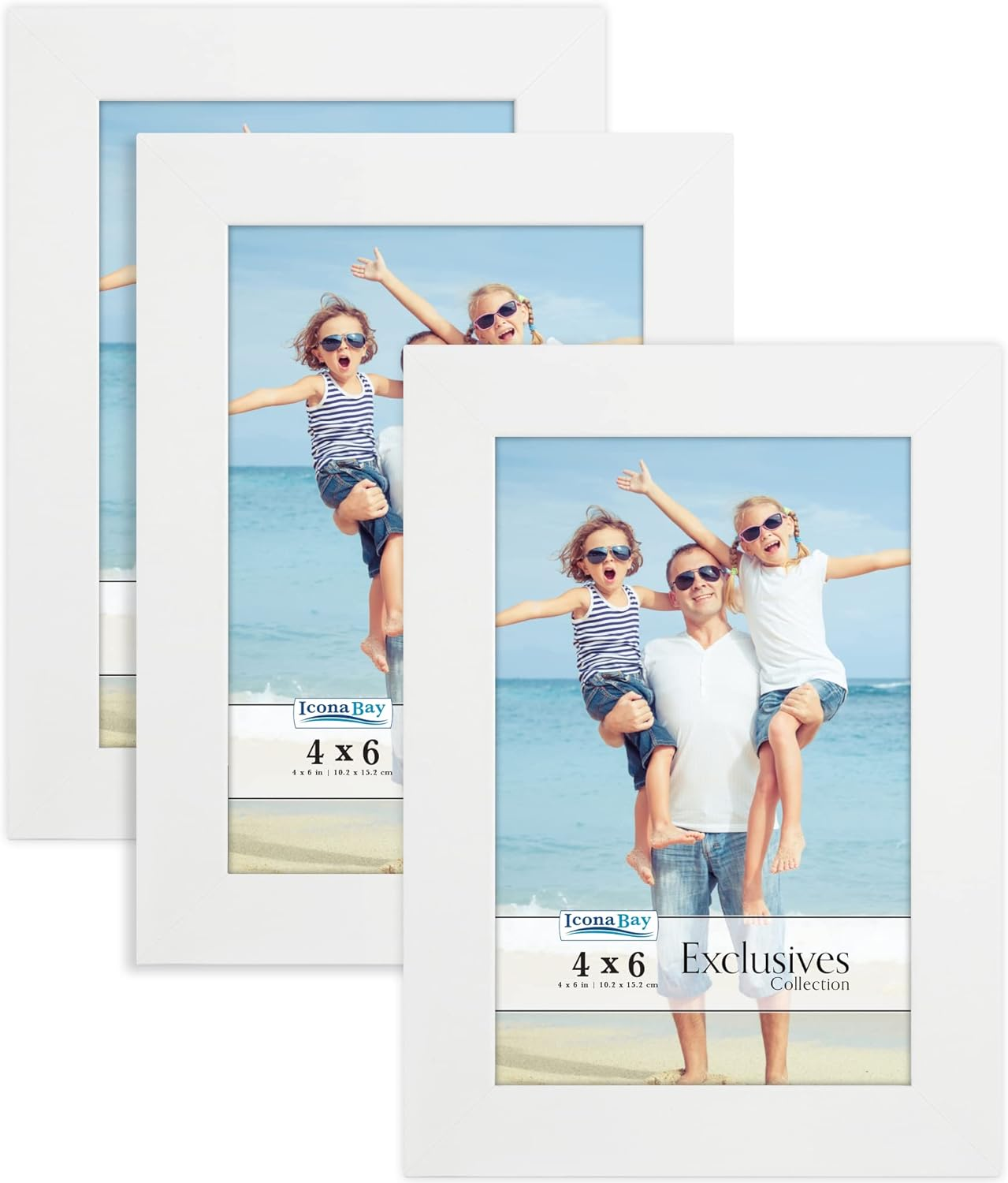 6X4 Picture Frames (White, 3 Pack), Sturdy Wood Composite Photo Frames 6 X 4, Sl