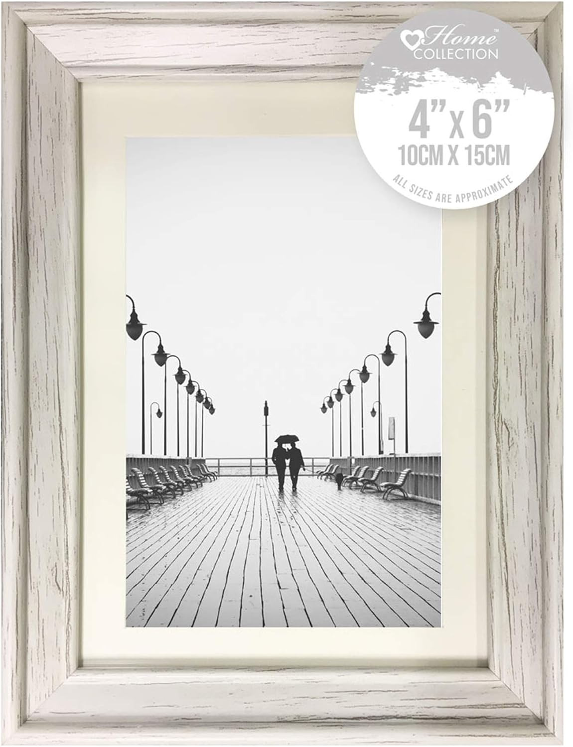6 x White Solitaire Shabby Chic Distressed Wood Styrene Photo Frames 4x6