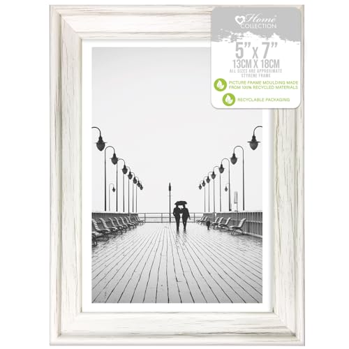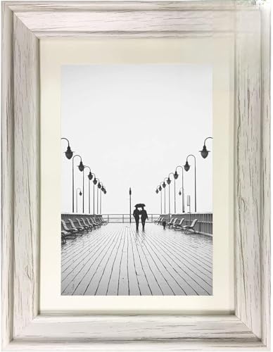 1ABOVE 5X7 Inch White Solitaire Shabby Chic Distressed Wood Styrene Photo Frames