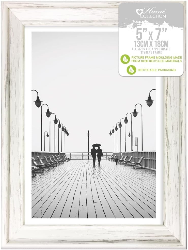 Design Group White Solitaire Shabby Chic Distressed Wood Styrene Photo Frames 5X