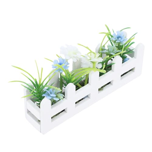 Keenso Mini Flowers High Simulation Miniature Potted Plant with Birch Wood Planter for 1:12 Scale Dollhouse Garden Decor (Blue White)
