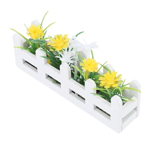 Keenso Mini Flowers High Simulation Miniature Potted Plant with Birch Wood Planter for 1:12 Scale Dollhouse Garden Decor (Yellow White)