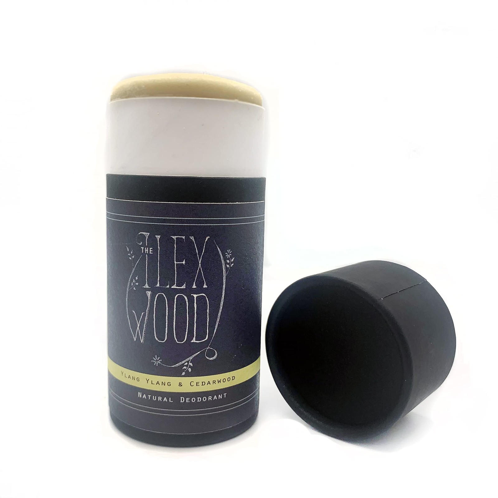 The Ilex Wood Natural Deodorant Stick 70ml – Handmade in UK, Aluminium Salts Free, Plastic Free, Alcohol Free, Vegan, Eco Friendly Cardboard Tube – Ylang Ylang & Cedarwood (Sweet & Woody)