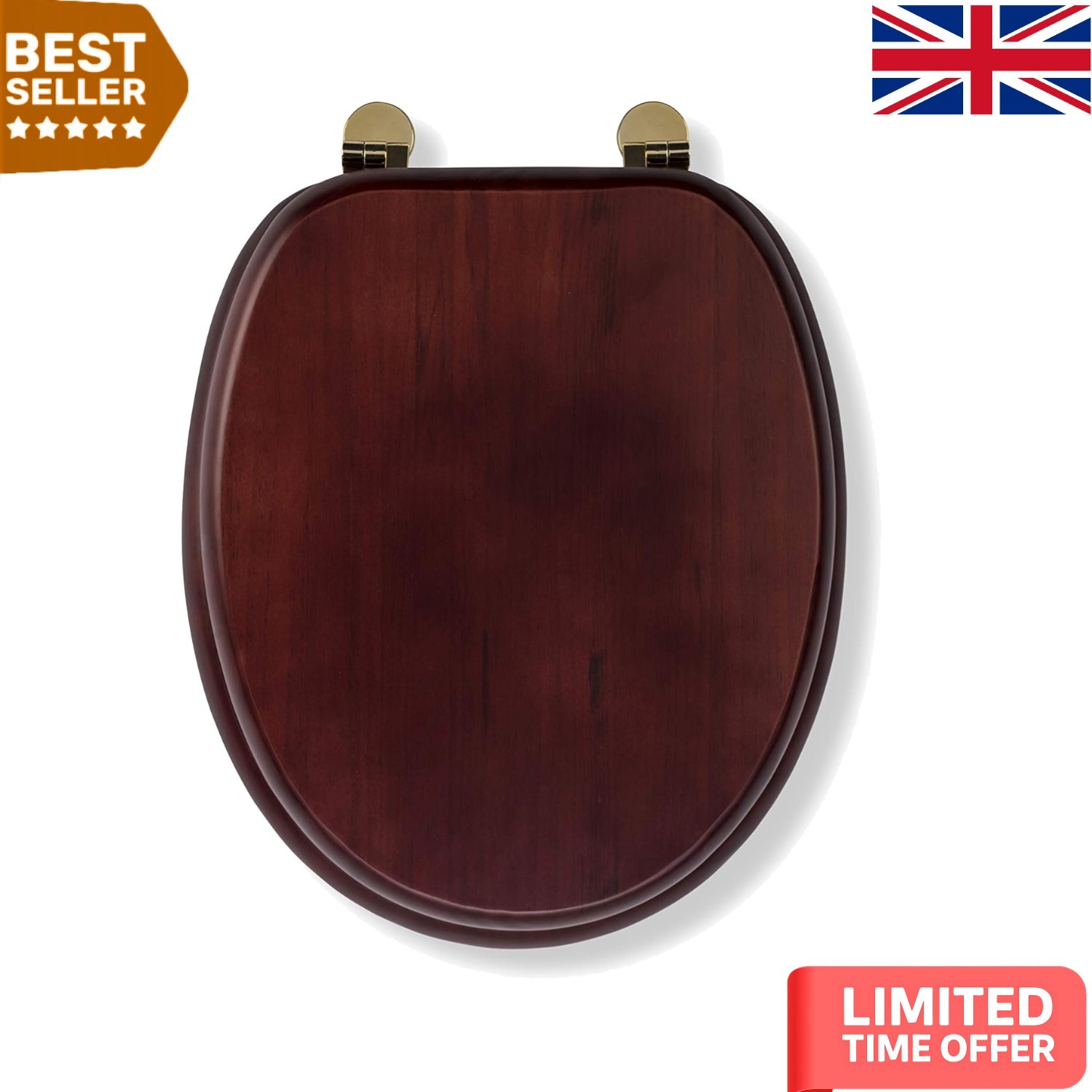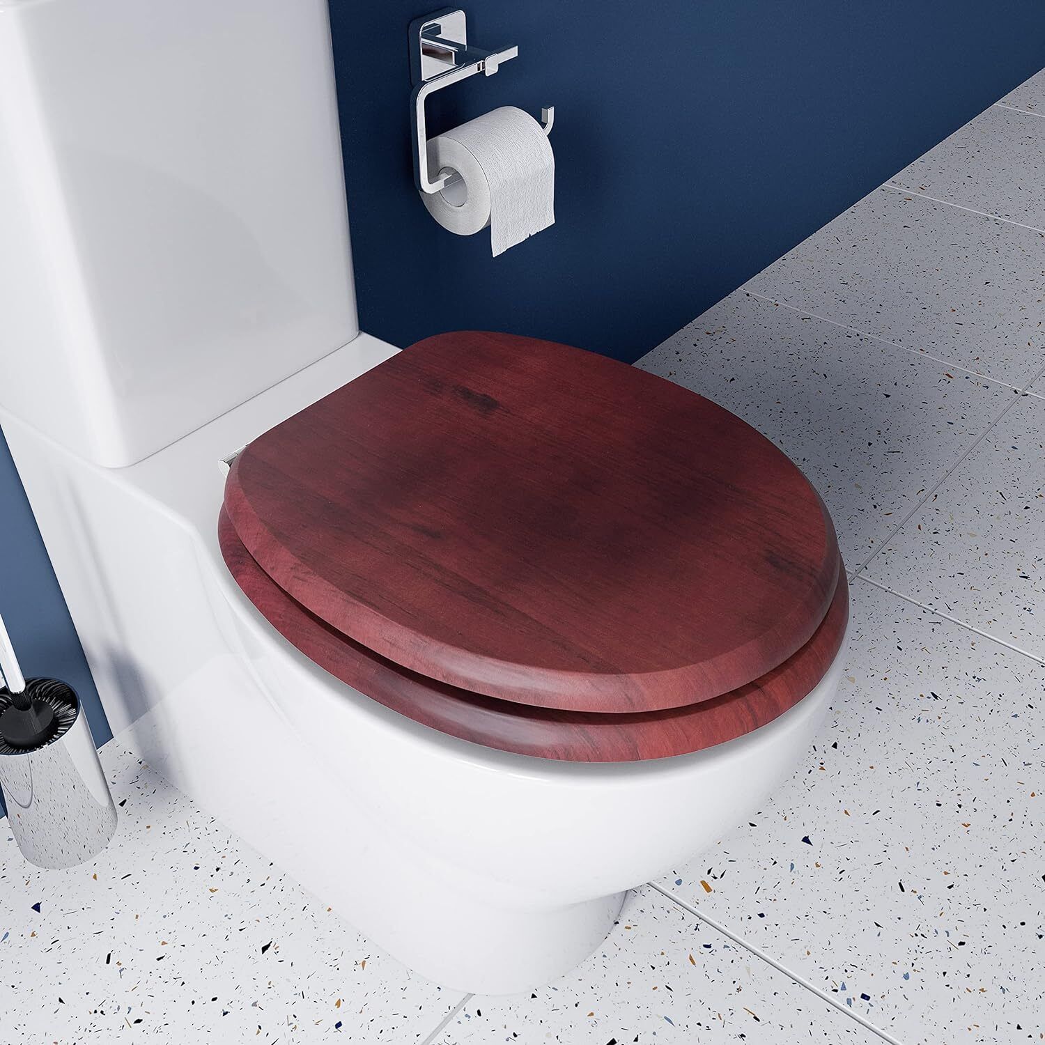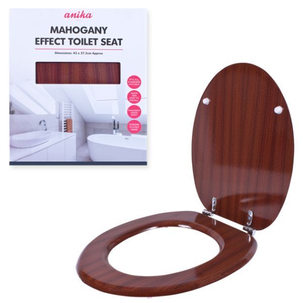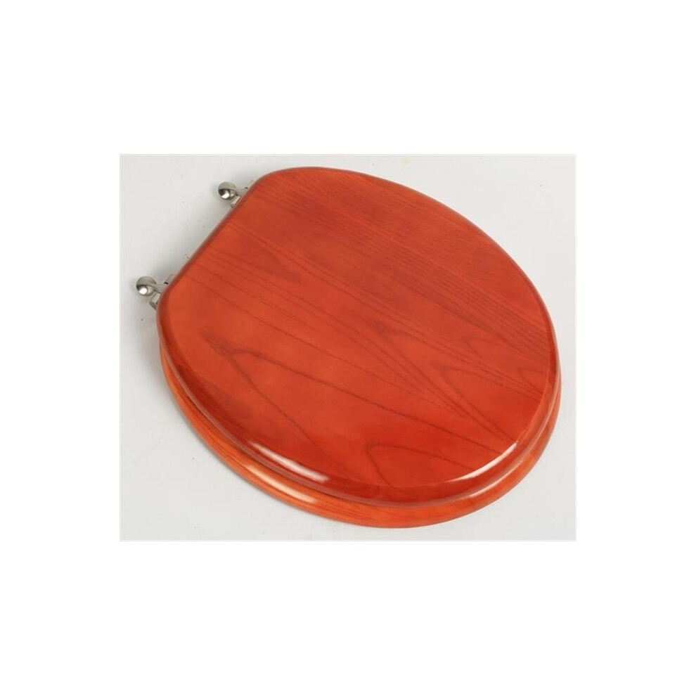 New Mahogany Solid Wood Effect Veneer Toilet Seat With Chrome Hinges Standard
