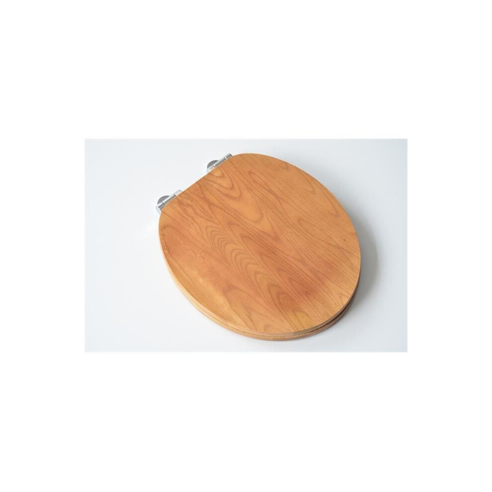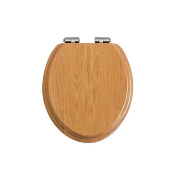 Heritage Wood Toilet Seat with Soft Close Chrome Hinges in Oak TSOAK101SC
