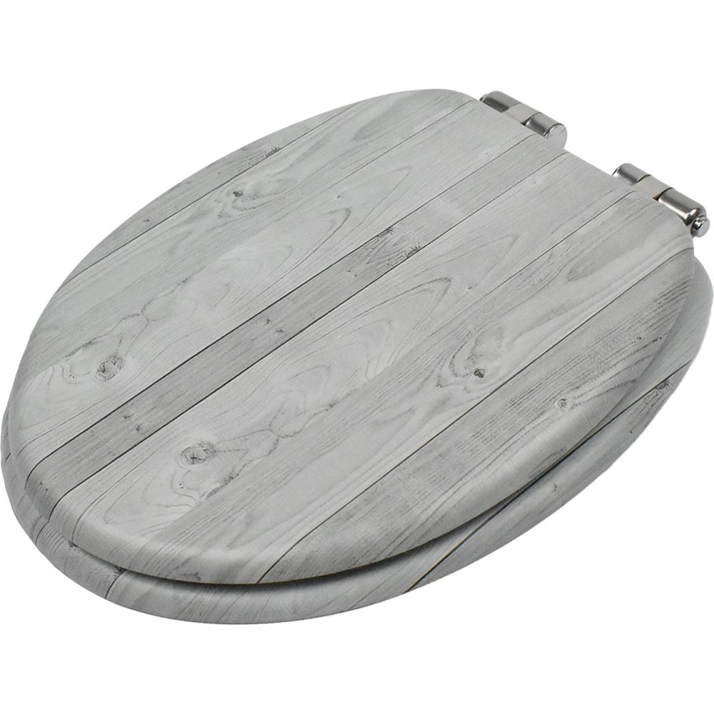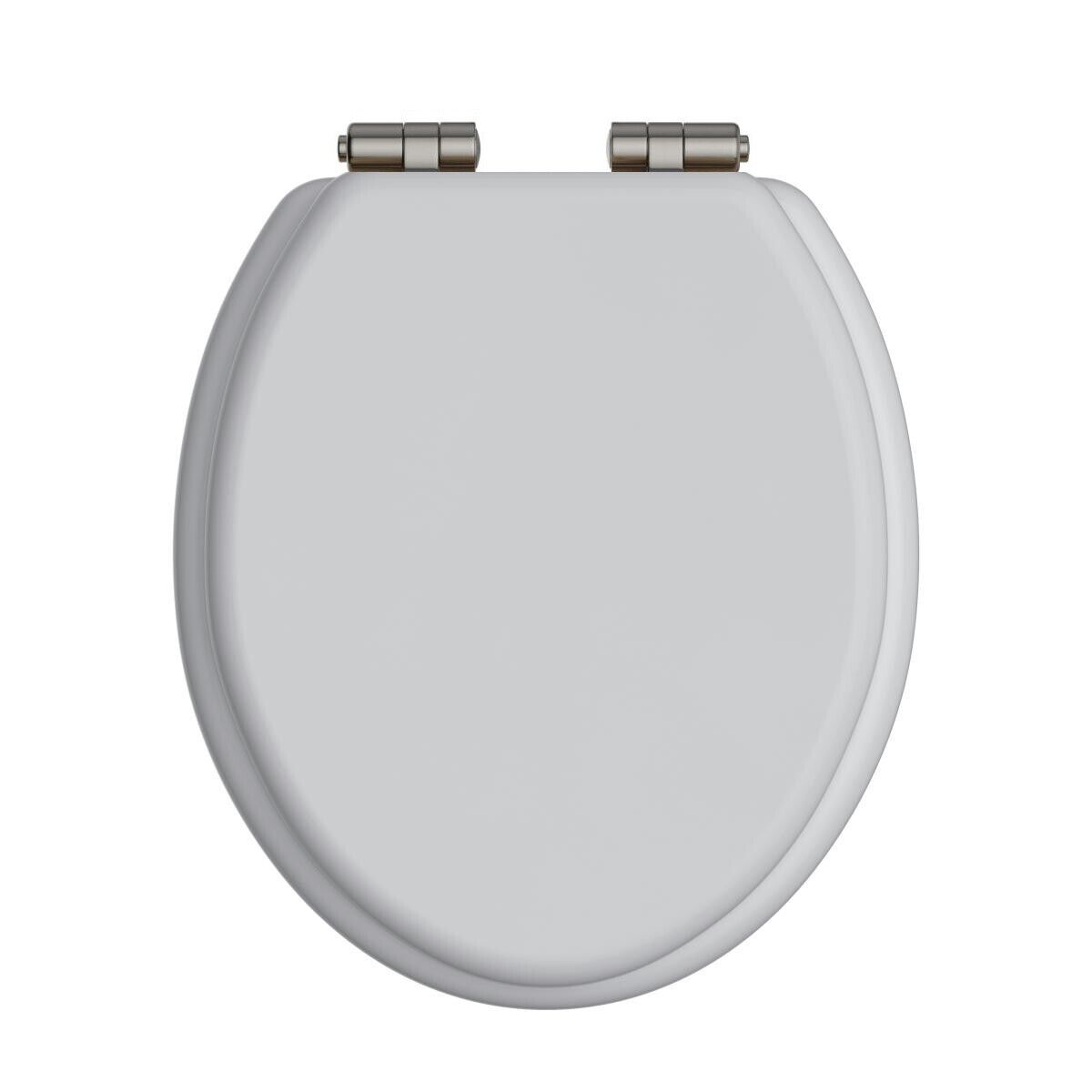 Wood Wooden Grey Toilet Seat Strong Silver Hinges Loo Seats Fittings Included