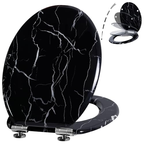 Angel Shield Toilet Seat Molded Wood Toilet Seat, Quiet Close with Quick Release Adjustable Hinges 45x37cm Oval, Fits EU Bottom-Mount Toilets (Black Marble)