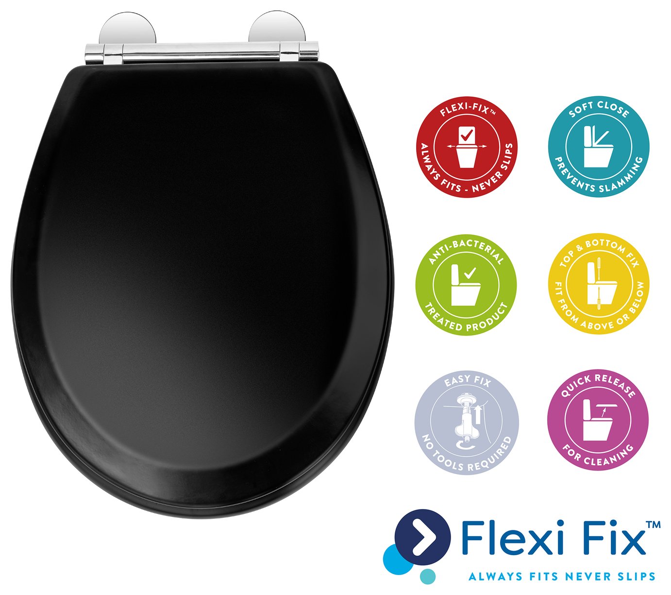 Standard Wood Toilet Seat Chrome Hinge Set - FREE Next-Day Delivery