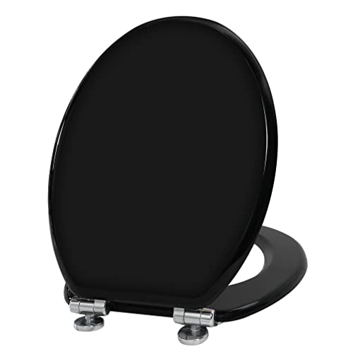 Angel Shield Wooden Toilet Seat with Adjustable Soft Close Hinges Antibacterial Molded Wood Toilet Seat Quick Release Removable Lid for Easy Cleaning and Assembly (Black)