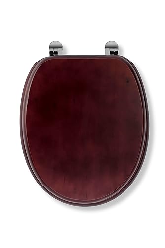 Designer Solid Round Oak Wood Toilet Seat with Brushed Nickel Hinges, American Cherry