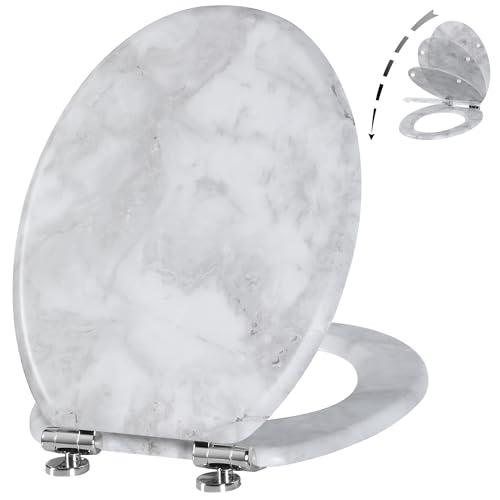 Angel Shield Toilet Seat Molded Wood Toilet Seat, Quiet Close with Quick Release Adjustable Hinges 45x37cm Oval, Fits EU Bottom-Mount Toilets (Gray Marble)
