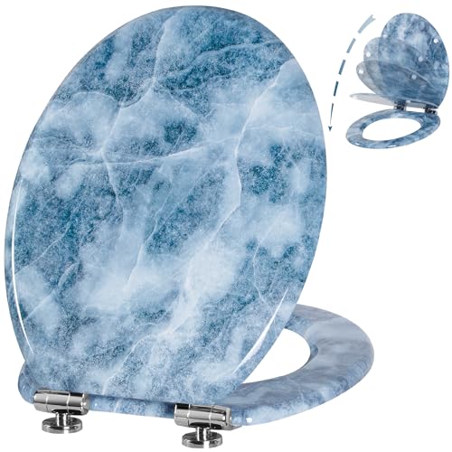 Angel Shield Toilet Seat Molded Wood Toilet Seat, Quiet Close with Quick Release Adjustable Hinges 45x37cm Oval, Fits EU Bottom-Mount Toilets (Ice Pattern)
