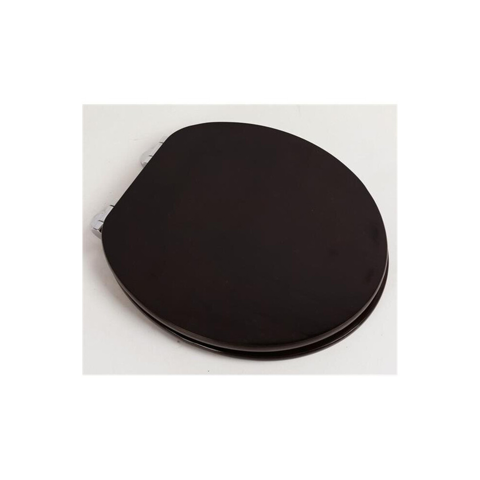 Designer Solid Round Oak Wood Toilet Seat, Dark Brown Oak with Chrome Hinges