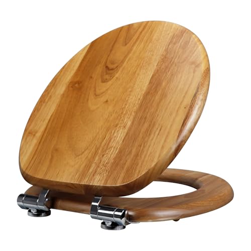 Fanmitrk Natural Solid Wood Toilet Seat-Wooden Toilet Seat,Soft Close with Metal Hinges,Easy to Install Easy to Clean