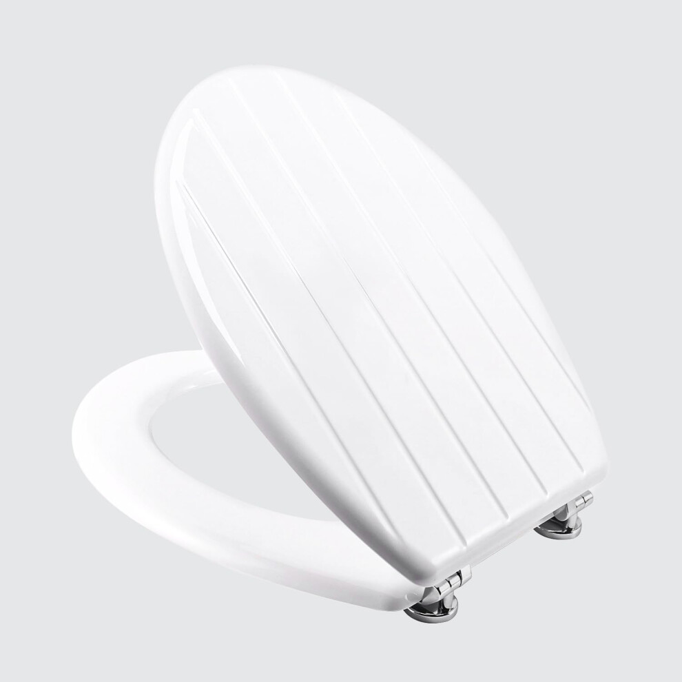 White Wooden Toilet Seat with Toilet Seat Fittings - 18'' (45 Cm) Oval Toilet Seat - Hygienic MDF Wood Toilet Seats with Tongue and Groove Design