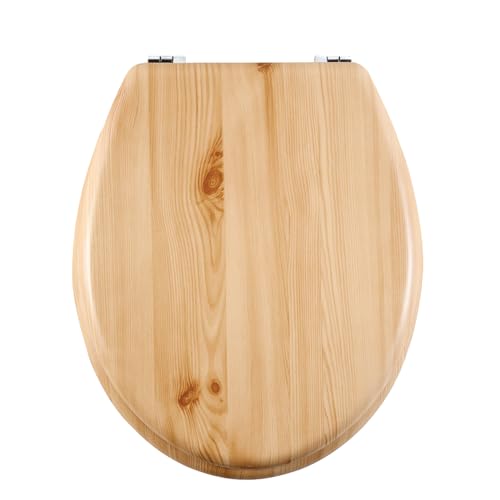 AQUALONA® Essential Value Toilet Seats Wipe Clean Moulded Wood - Stainless Steel Hinges - Wipe Clean - Easy Installation (Natural Wood)