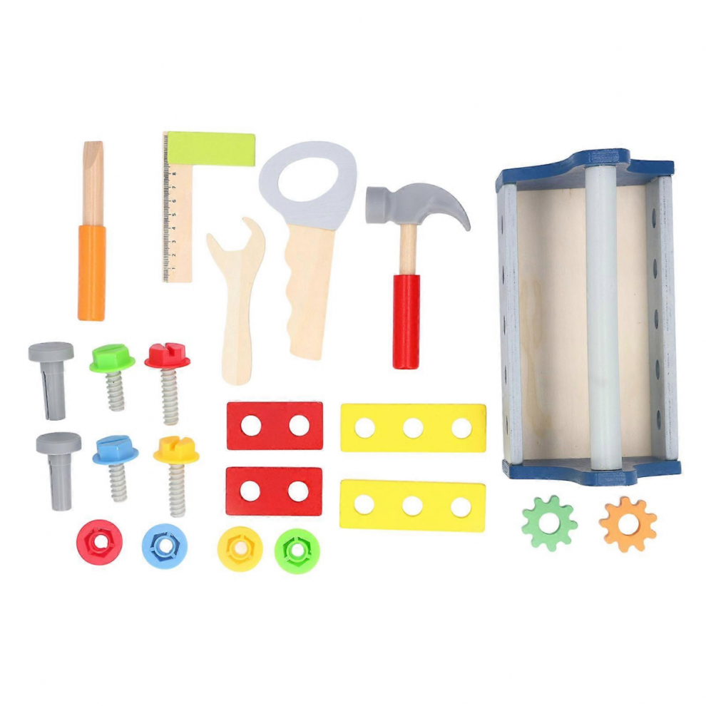 Wooden Tool Toy Box DIY Educational Realistic Screwing Removing Nuts Wood Tool Building Box Kit for Children Star Tool Basket
