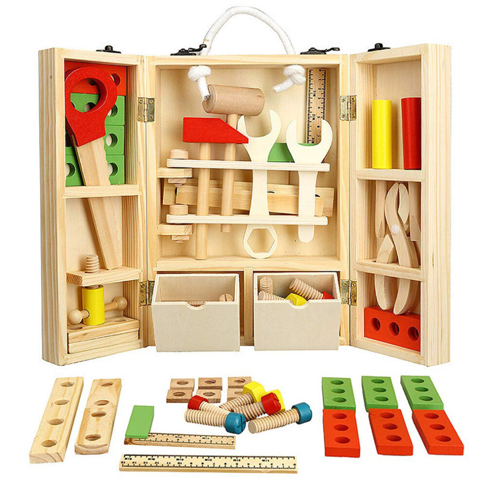 The Magic Toy Shop 17Pcs Wooden Tool Box for Kids Educational Building & Role Play Toys Boys Girls
