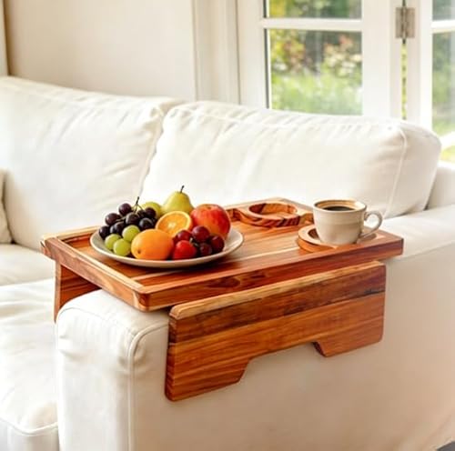 Dynamic-top Teak Wood Couch Trays & Sofa Armrest Table