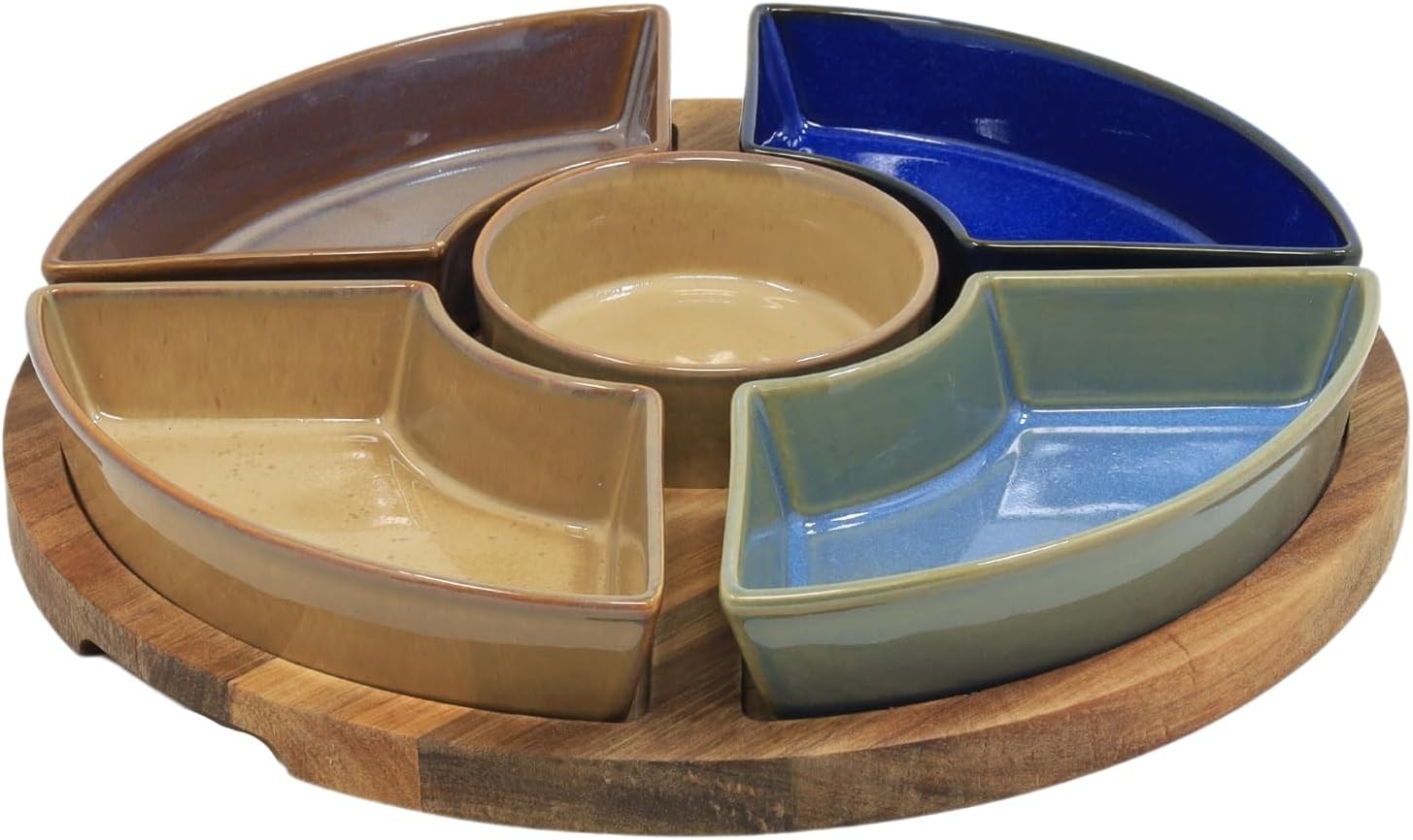 Lesser & Pavey Elements Snack Dishes & Wood Trays | Colorful Serving Platter with Bowls | Round and Square Design for Home | Stylish Food Serving for Parties
