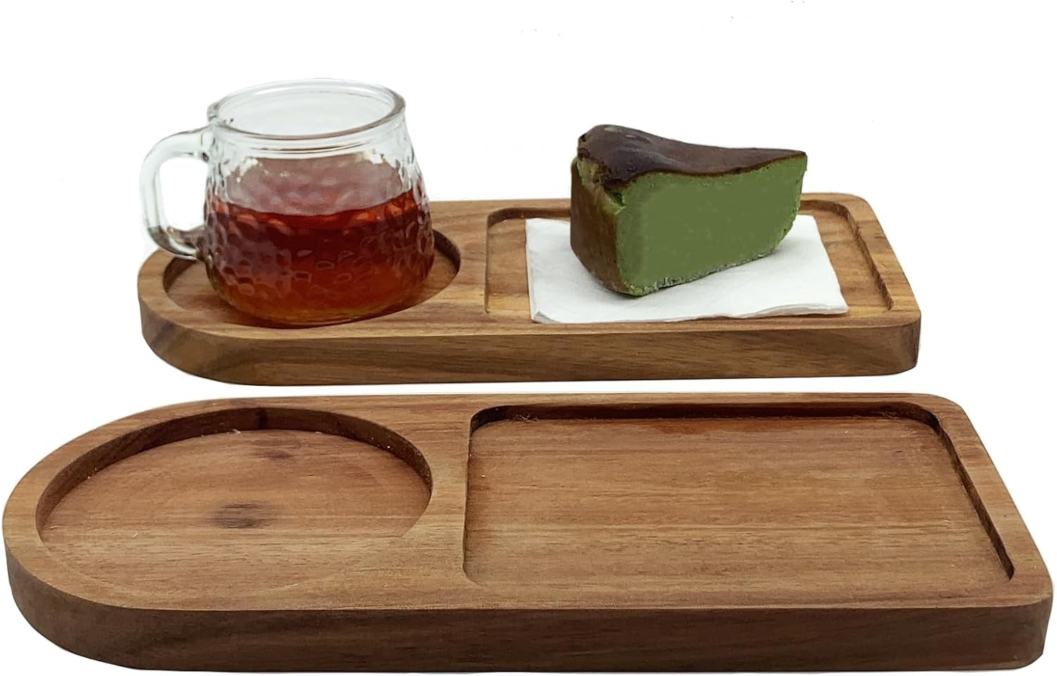 Small Wooden Serving Tray Platters, Set of 2 Wood Tray Drink Trays for Coffee T