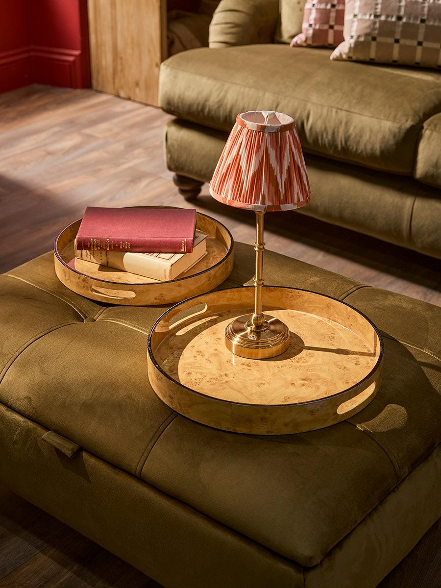 Elm home and garden Round solid wood trays nest of 2 tables side end lamp table