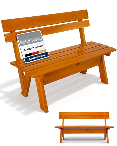 Beautissu Wooden Garden Bench Seat Weatherproof 3 Seater 150 cm wide – Wooden Garden Furniture Seating Durable Robust & Lacquered Solid Outdoor Bench for Balcony Terrace Conservatory Courtyard – GR