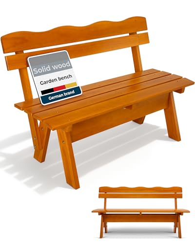 Beautissu Wooden Garden Bench Seat Weatherproof 3 Seater 150 cm wide – Wooden Garden Furniture Seating Durable Robust & Lacquered Solid Outdoor Bench for Balcony Terrace Conservatory Courtyard – RD
