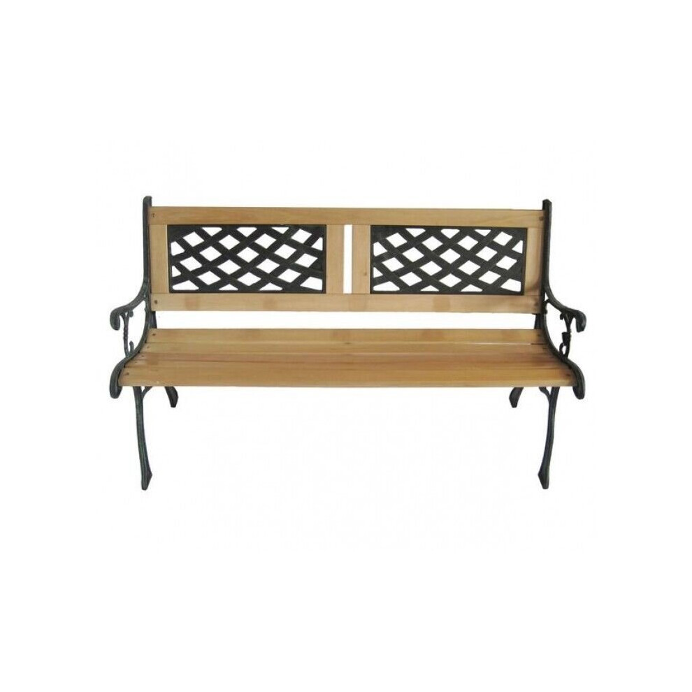 BIRCHTREE 3 Seater Wooden Slat Garden Bench Seat Lattice Style Cast Iron Legs