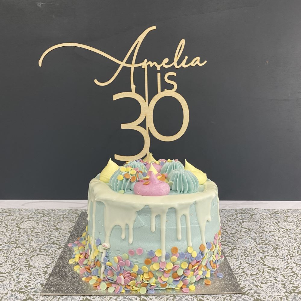 Happy 30th Birthday Wooden Cake Topper with Custom Name, Personalised Wood Toppers by 3 LITTLE DESSERTS (6 INCHES)