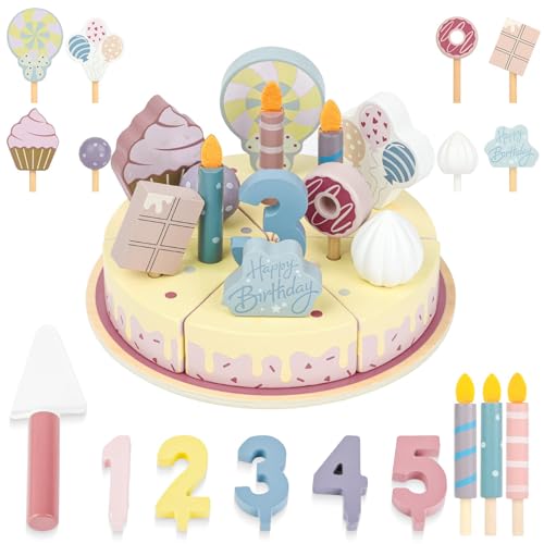 Airlab Wooden Birthday Cake Toy, Wooden Toy Kitchen Accessories and Tea Party Set for Toddlers, Play Food for Children Kitchen, Role Play Educational Toys for 2 3 4 5 Year Olds Girls Birthday Gift