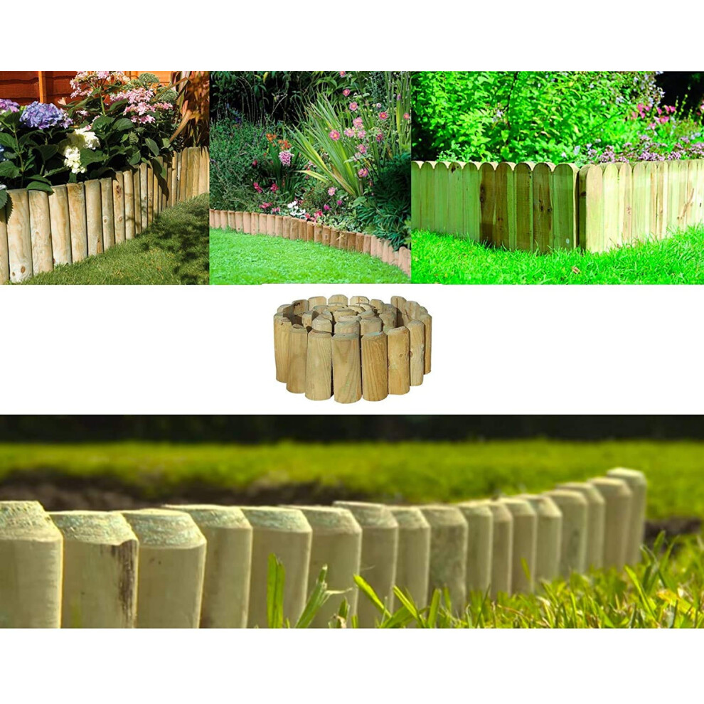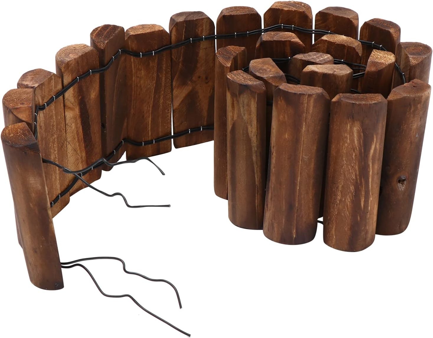 Wooden Roll Border Fixed Picket Fence Edge Garden Outdoor Lawn Edging Fixed Edge 1m x 15cm (2)