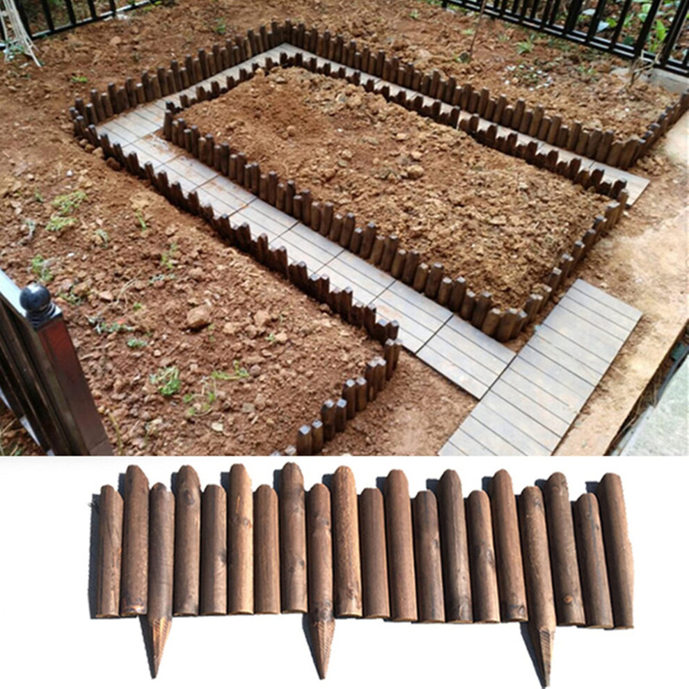 Monal 1M Wooden Log Fixed Picket Fencing Lawn Border Edging Panel Solid Natural Look Landscape Outdoor Garden Path Barrier Fence For Flowers Plants